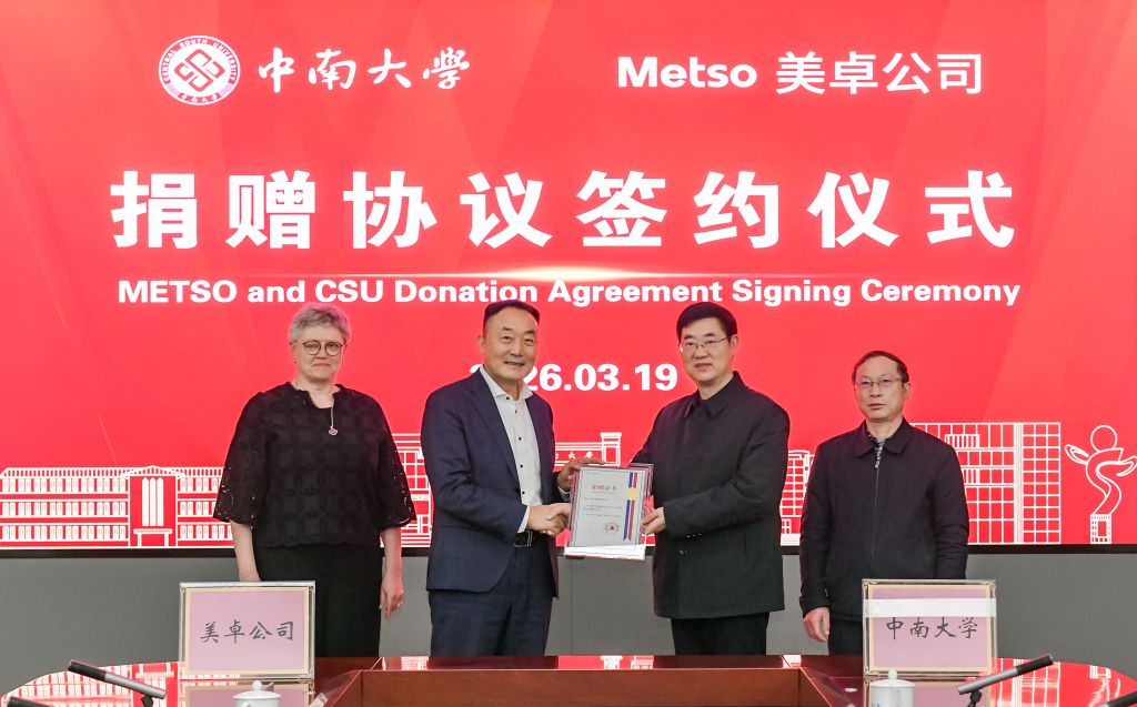 3月19日,中南大学——美卓公司捐赠协议签约仪式在岳麓山校区科教楼三会议室举行。美卓公司大中华区总裁梁晓峰,人才运营发展副总裁Hannele Jarvisto,校党委副书记付刚华等出席签约仪式。